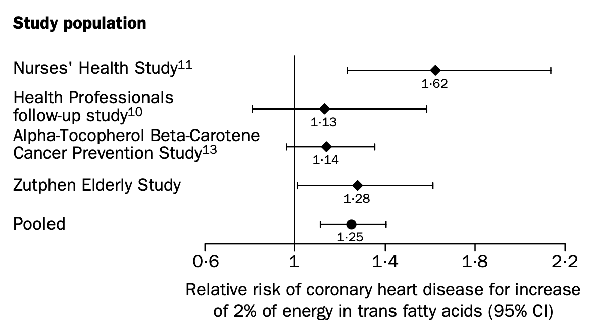 Oomen, C. M., Ocké, M. C., Feskens, E. J., van Erp-Baart, M. A., Kok, F. J., & Kromhout, D. (2001). Association between trans fatty acid intake and 10-year risk of coronary heart disease in the Zutphen Elderly Study: a prospective population-based study. Lancet (London, England), 357(9258), 746–751. doi.org