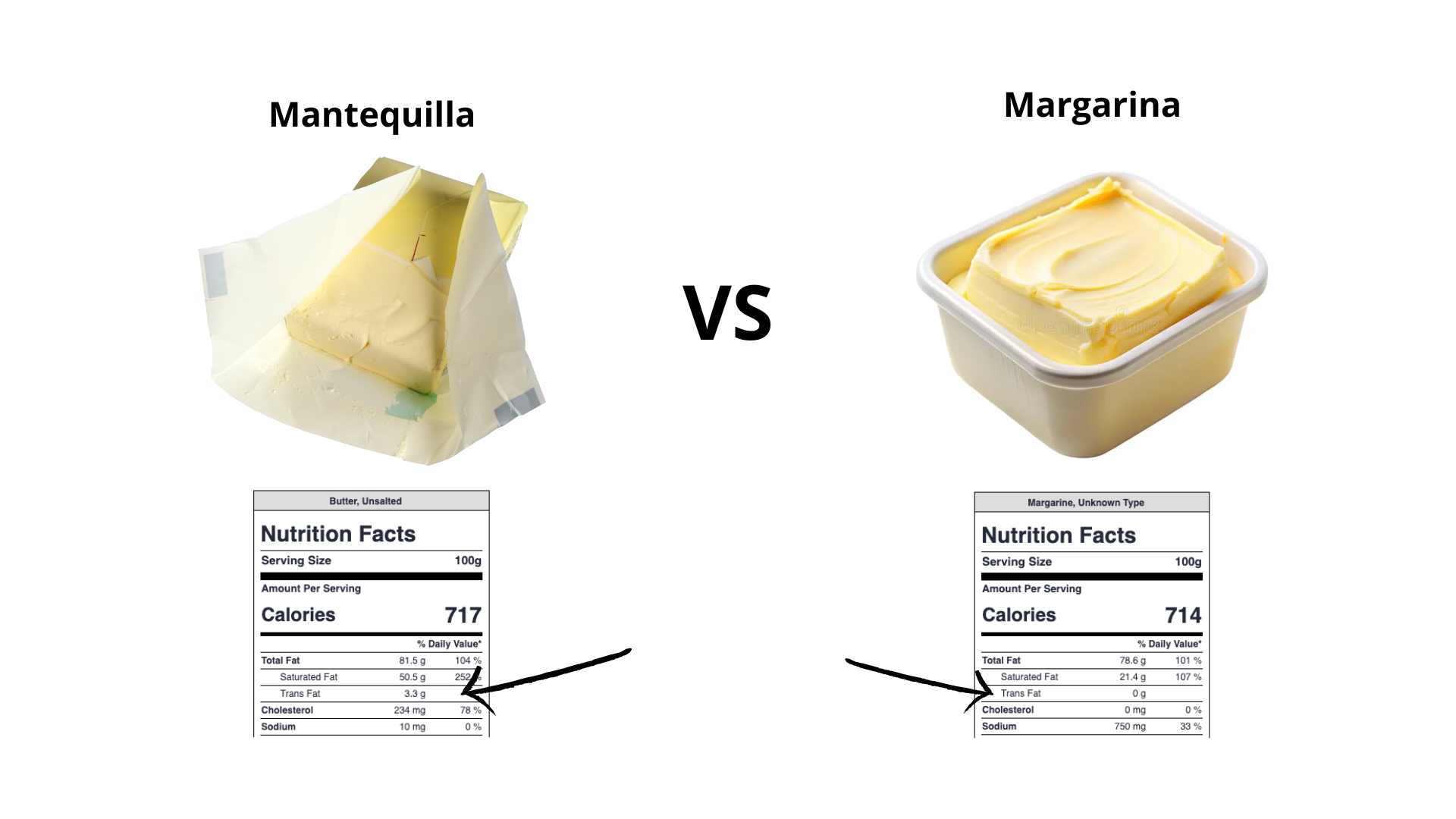 Llegados a este punto, es normal pensar: “perfecto, tiro la margarina y vuelvo a la mantequilla de toda la vida”. Pero no tan rápido, aquí viene el plot twist: según bases de datos nutricionales oficiales, la mantequilla puede aportar más de 3 g de grasas trans por cada 100 g de producto, mientras que una margarina reformulada puede tener cero o casi cero (9).Es decir: un alimento “natural” puede aportar más grasas trans que un producto industrial reformulado.